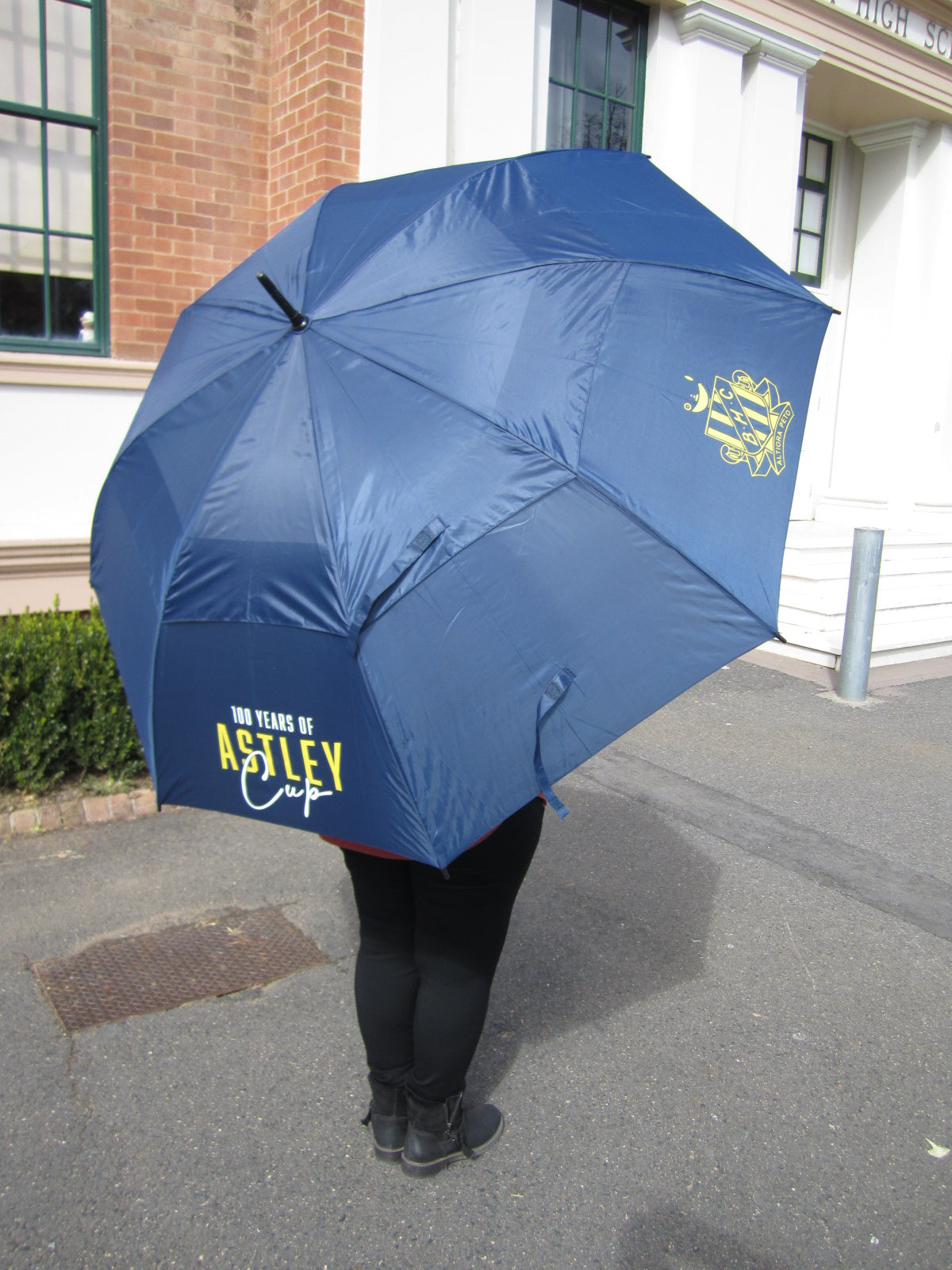 REDUCED to $28.00 - Superior automatic opening, eight panel sports umbrella. Vented, twin panel showerproof and windproof 190T canopy. Strong fibreglass shaft with contoured soft-touch handle.
